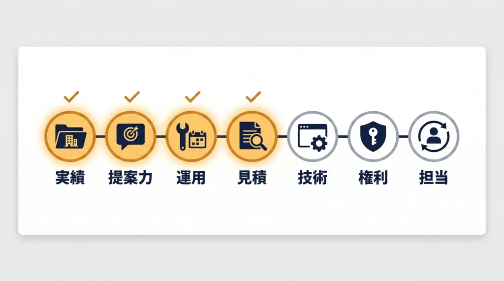 | 2. 提案の質 | 「作ること」ではなく「成果」の話をしてくれるか |