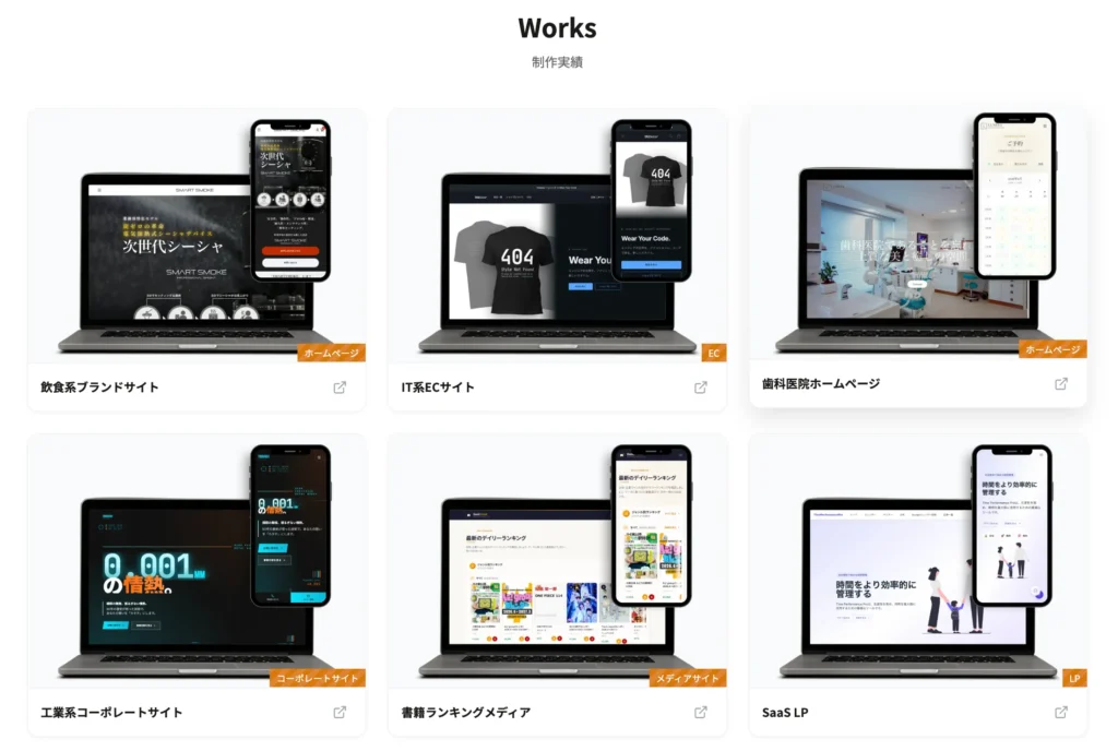 制作実績を見るときは、デザインのきれいさだけでなく、自社に近い案件があるかどうかを確認してください。