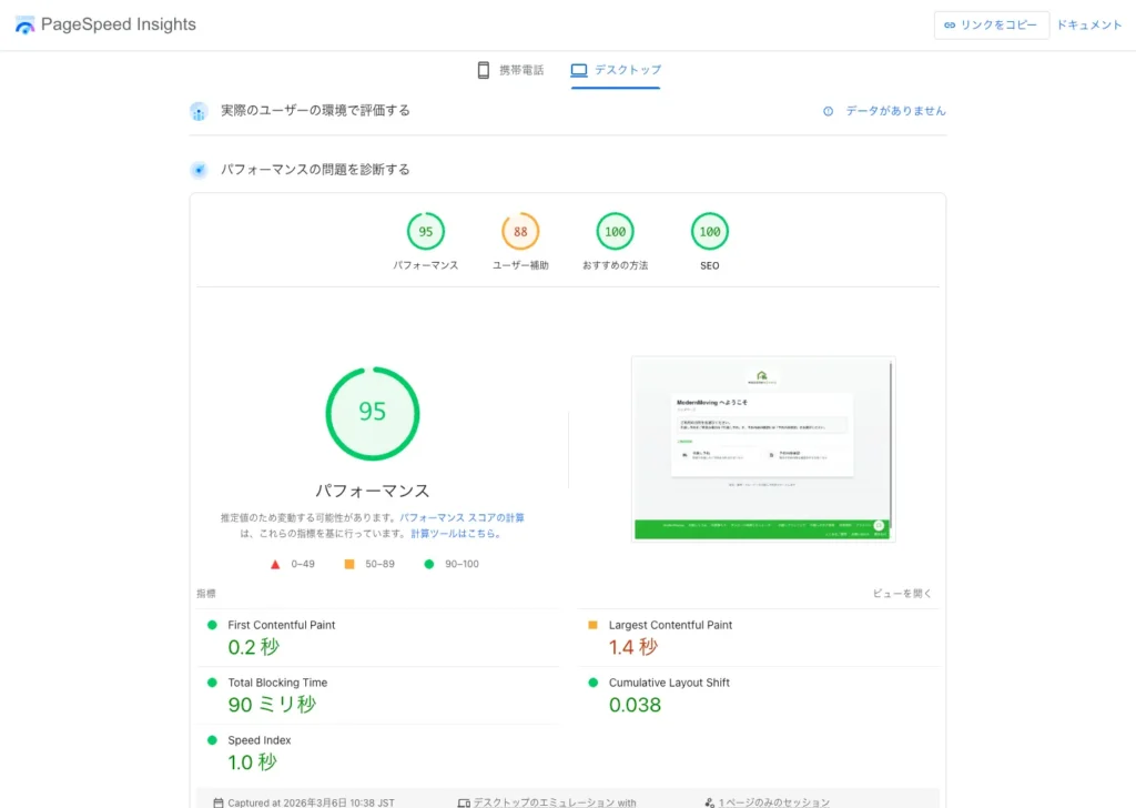 | 表示速度 | PageSpeed Insightsでのスコア確認 |