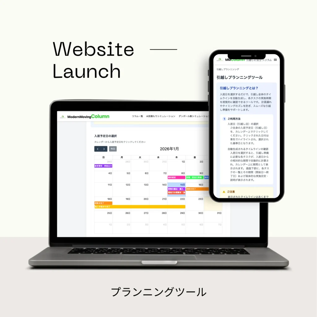 引越しに必要な日程を一括で可視化できるツール。